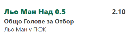 Льо Ман е отбор от Лига Насионал и се съмнявам,че ще се опитат да се затворят. Просто няма да издържат на атакуващия потенциал на Парижани. Пред собствена публика ще имат мотивация за добро представяне и поне 1 вкаран гол,което няма да е някаква изненада с оглед пропускливата защита на ПСЖ в последните им 11 двубоя. Само 1 чиста мрежа.В турнира също не си опазиха вратата дори и от отбора на Еспали,които им вкараха 2. ПСЖ сами си правят понякога нещата сложни.